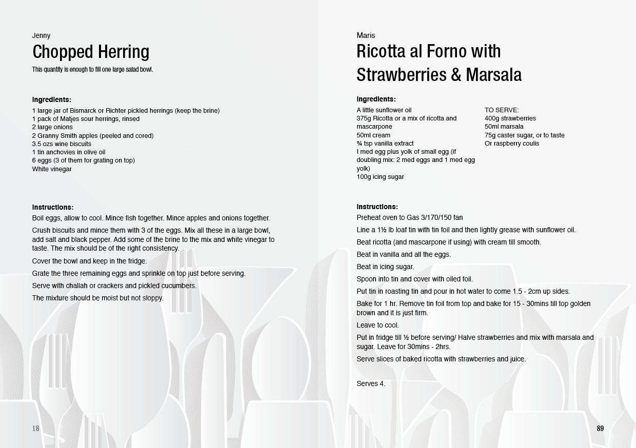 This was a collection of various recipes from lots of different people with different styles and ideas. Our job was to design the layout and then keep them all in the same format whilst keeping it easy to read and use. As you can see from the reaction, it was a great success. No extra charges for the extra hours we spent getting it right.Client details